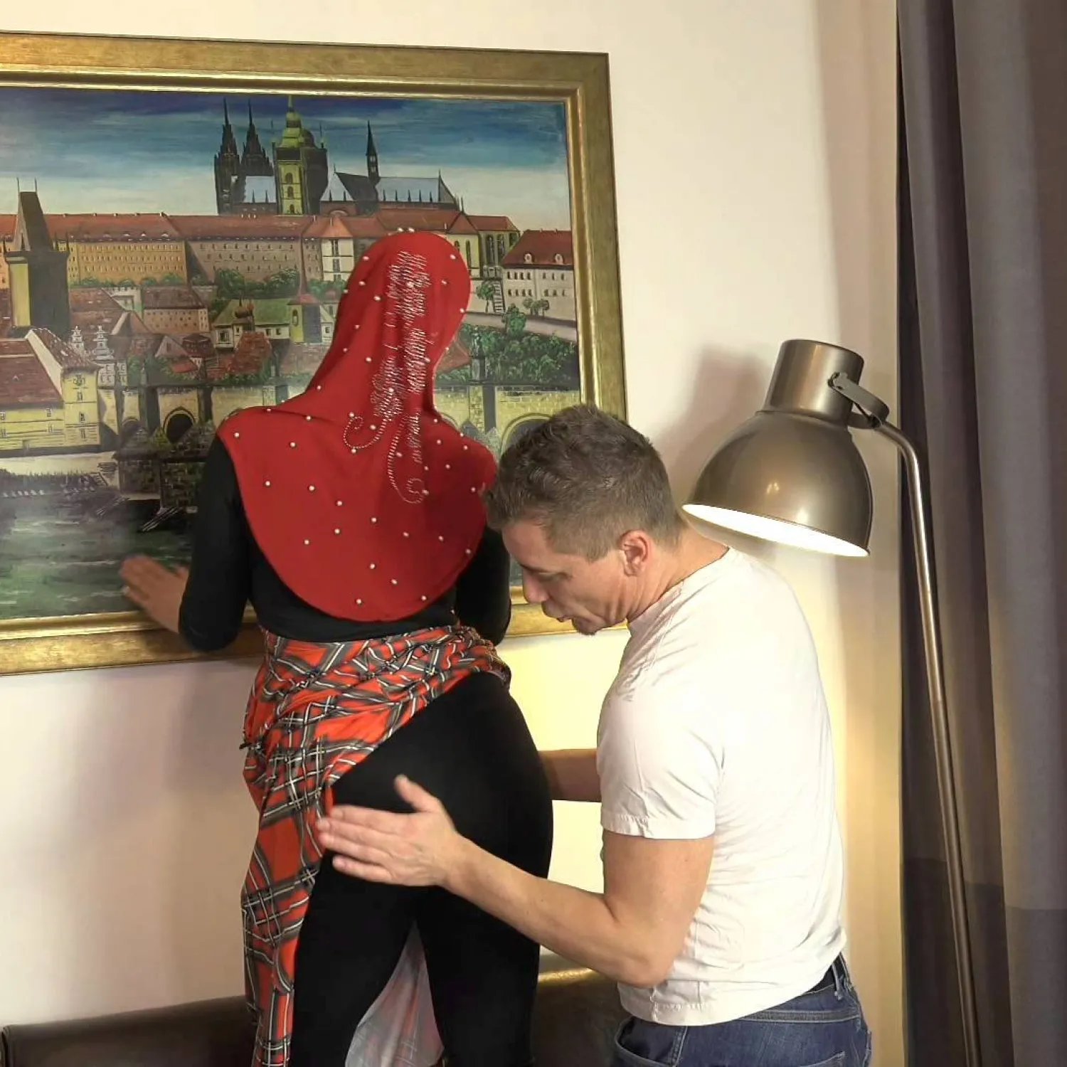 Graži musulmonė mergina su didelėmis krūtimis ir angelo veidu. Ji dėvi gražią suknelę, apsigaubusi raudonu hidžabu. Didelės krūtys Chloja valosi namuose. Jos vyras žiūrėjo į jos puikų kūną, o tada ji čiulpė jo varpą.